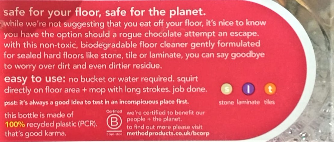 Method’s copy makes cleaning feel less like cleaning and more like fun. Which is a bit of a miracle in my opinion. The copy on the back of their packaging is designed to make you smile, and (for me at least) it works a treat. Please don’t judge me on the photos, I’m a copywriter, not a photographer (and it shows).